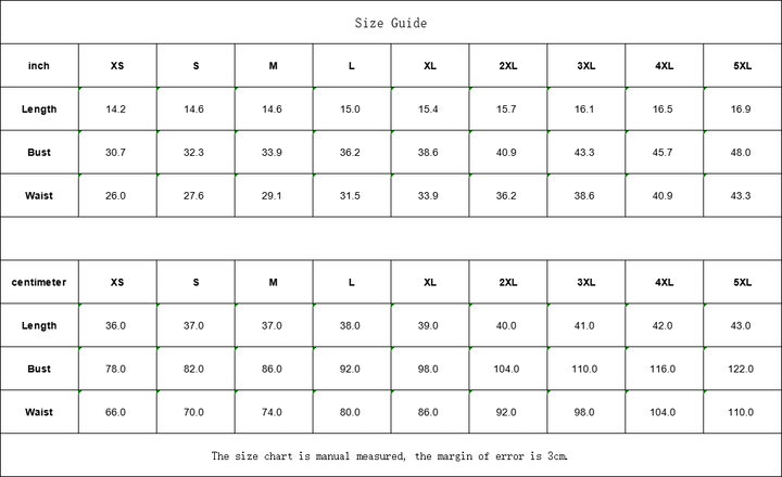 | inch | XS | S | M | L | XL | 2XL | 3XL | 4XL | 5XL |